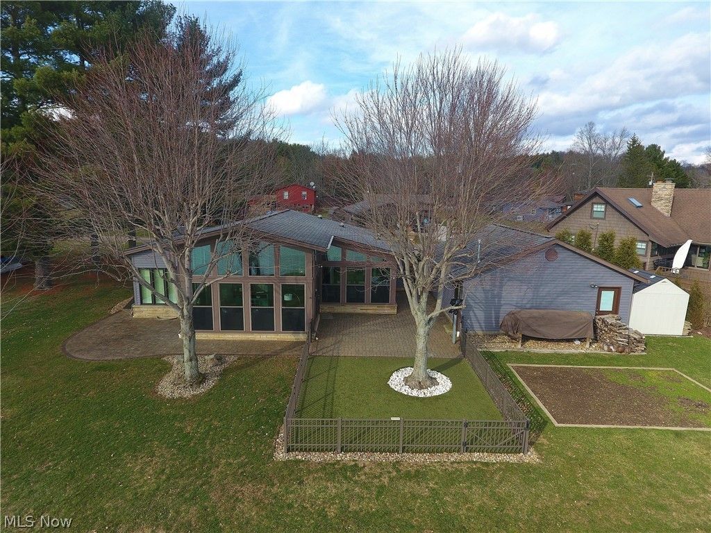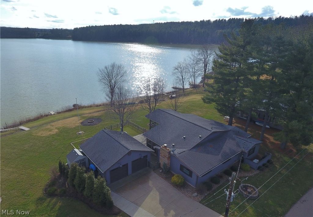 Picturesque lake views define this stunning waterfront ranch in the desirable Arrowhead community at Atwood Lake, perfectly positioned on one of the most scenic locations on the lake. Ideal as a year-round residence or a relaxing vacation retreat, this meticulously maintained home offers numerous updates and is truly move-in ready. Upon entering, your eye is immediately drawn to the breathtaking lake views showcased through floor-to-ceiling windows in the dining area and four-season sunroom, both highlighted by vaulted ceilings. The beautifully remodeled kitchen features granite countertops, a butcher-block island with breakfast bar, and an open layout to the living room?allowing stunning water views from nearly every space. The spacious owner's suite offers vaulted ceilings and shuttered windows, welcoming peaceful sunrises each morning & a separated home office area. The custom-designed en suite bath impresses with an oversized tiled and glass shower, granite vanity, generous cabinetry, and closet. Two additional bedrooms and an updated second full bath with custom tiled shower provide comfortable accommodations for family and guests. Convenient first-floor laundry includes a soaking sink. Outdoor living shines with a lakefront wrap-around paver patio, perfect for entertaining, complemented by a quality steel fence for added convenience and pet safety. Boaters will appreciate the new 40-foot floating dock with custom metal steps and gangway, ready for enjoying all 1,540 acres of beautiful Atwood Lake. The nearby community beach adds even more recreation for family and friends. No detail was overlooked in the finished and heated 24x24 two-car garage, complete with metal workbench and shelving that remain. A partial basement offers exceptional storage, and a whole-house Generac automatic generator provides year-round peace of mind. 2025 MWCD leased lot rate: $5,853. Be sure to explore the 3D virtual tour for an immersive look at this exceptional lakefront home.